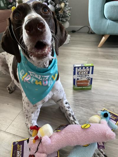 Multipet Loofa Birthday Squeaky Plush Dog Toy Color Varies 12 In Chewy Com
